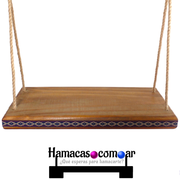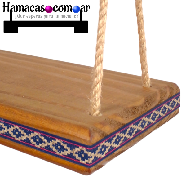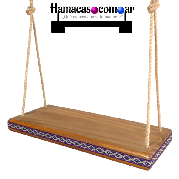 Hamaca REFORZADA de excelente calidad y fina terminación, construida artesanalmente en madera maciza de 50 cm de largo y 20 cm de ancho.