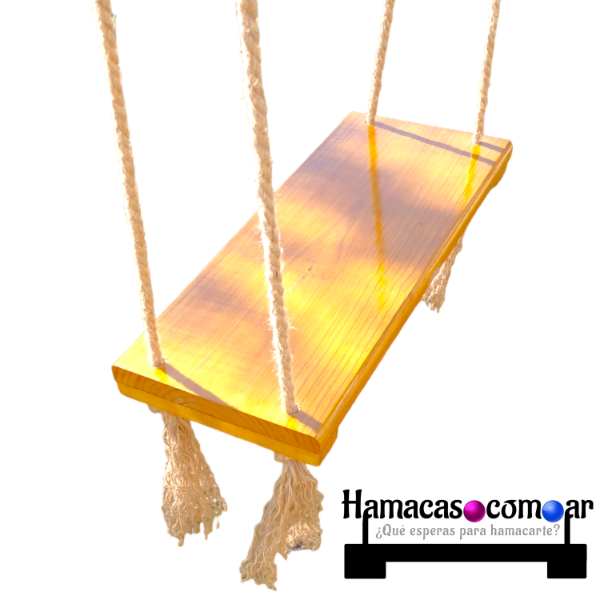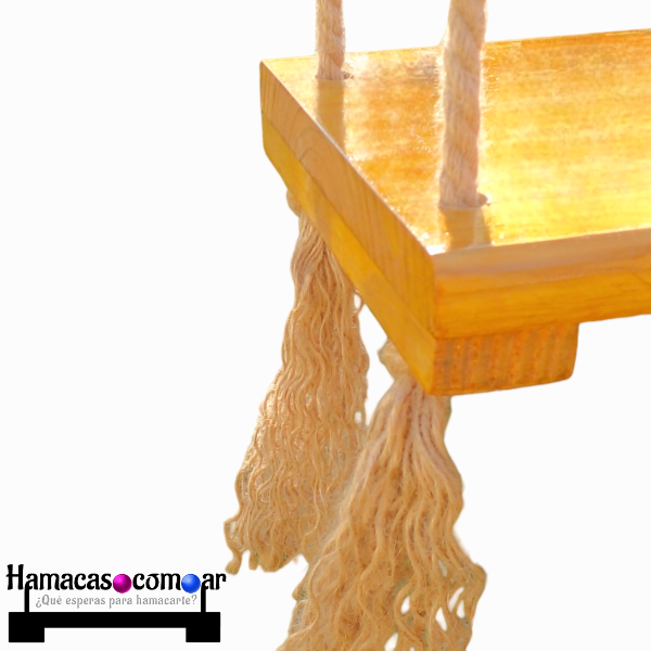 Hamaca REFORZADA de excelente calidad y fina terminación, construida artesanalmente en madera maciza de 50 cm de largo y 20 cm de ancho.