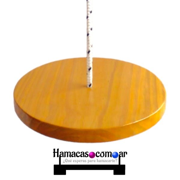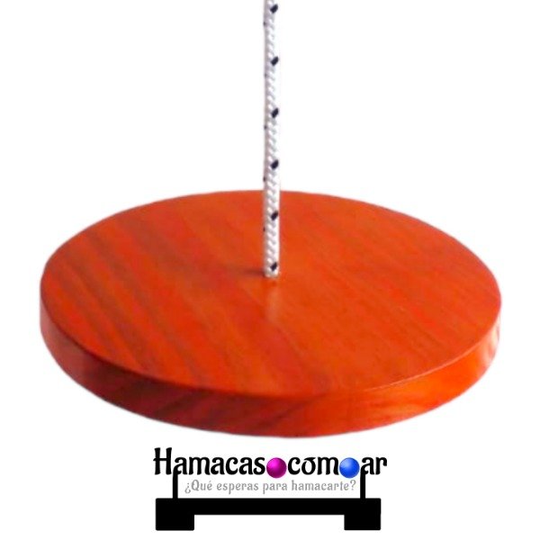 La tabla circular presenta un refuerzo inferior que se encuentra encolado y atornillado y asegura una muy prolongada vida útil de la hamaca.